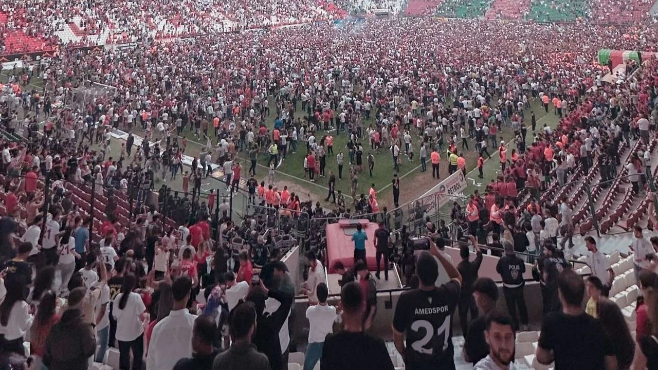 1. Lig'e çıkan Amedspor, Menemen FK ile berabere kalarak şampiyonluk oldu. Yeni Diyarbakır Stadyumu'nda 33 bin tarafta sahaya inerek kutlama yaptı. Yer yerinde oynamaya devam ediyor.