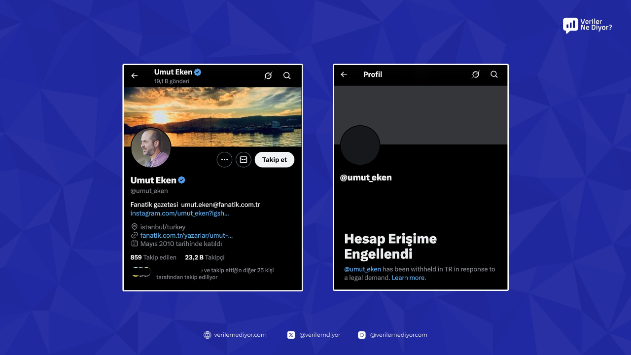 Futbolda yürütülen yasa dışı bahis soruşturması kapsamında, “halkı yanıltıcı bilgiyi alenen yayma” suçlamasıyla tutuklanan gazeteci Umut Eken’in sosyal medya platformu X (Twitter) hesabına erişim engeli getirildi.