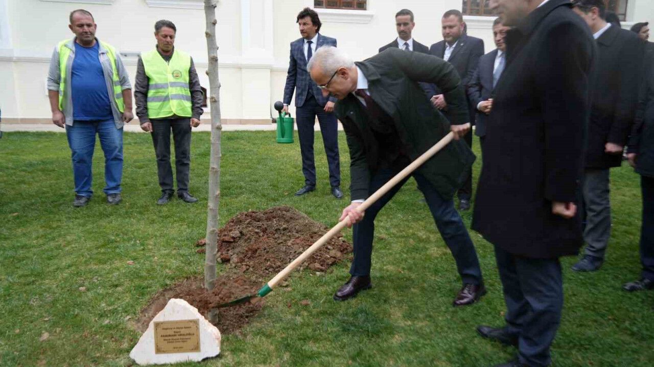 Burada minik öğrencilerin çiçek hediyesini alan Bakan Uraloğlu bir süre onlarla sohbet etti. Ardından 'Tören Mangası'nın selamlayan Bakan Uraloğlu, kurumun bahçesine çınar fidanı dikerek can suyu verdi.