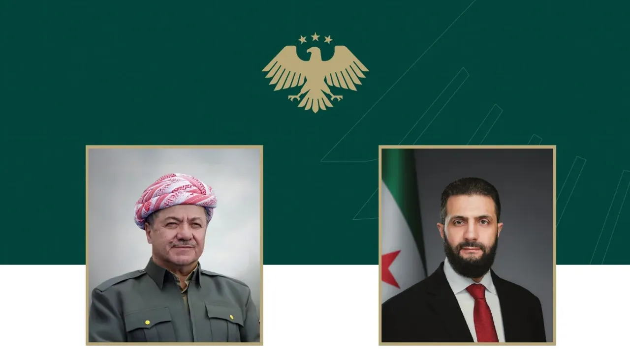 Suriye geçici hükümetinin Cumhurbaşkanlığı, Mesud Barzani ile Ahmed eş-Şara arasında yapılan telefon görüşmesine ilişkin açıklama yayımladı. Açıklamada, son gelişmelerin ve Şam yönetimi ile Suriye Demokratik Güçleri (SDG) arasında imzalanan anlaşmanın ele alındığı bildirildi.