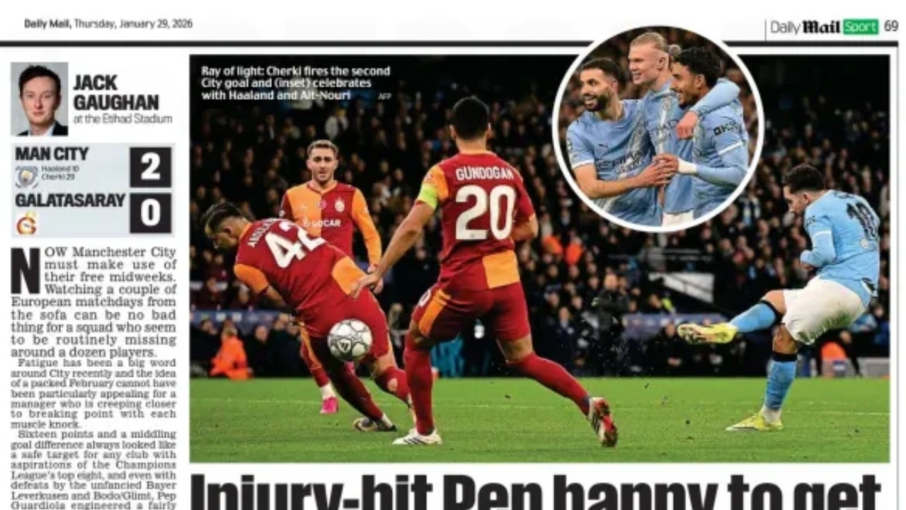 İngiliz basını, Manchester City’nin UEFA Şampiyonlar Ligi’nde Galatasaray’ı 2-0 mağlup ettiği karşılaşmayı geniş biçimde ele aldı. Yorumların odağında, uzun süredir gol orucunda olan Erling Haaland’ın skoru açması ve City’nin lig etabını ilk sekiz içinde tamamlayarak play-off oynamadan son 16 turuna yükselmesi yer aldı.