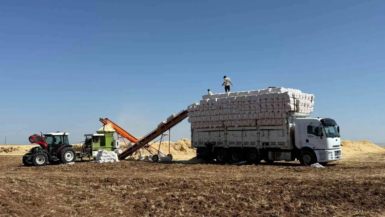 Türkiye’nin önemli tarım merkezlerinden biri olan Diyarbakır’da buğday ve arpa hasadının ardından saman mesaisi başladı. Biçerdöverlerle toplanan saman, yüksek sıcaklıklara rağmen işçiler tarafından kamyonlara yüklenip çeşitli illerdeki besicilere gönderiliyor.
