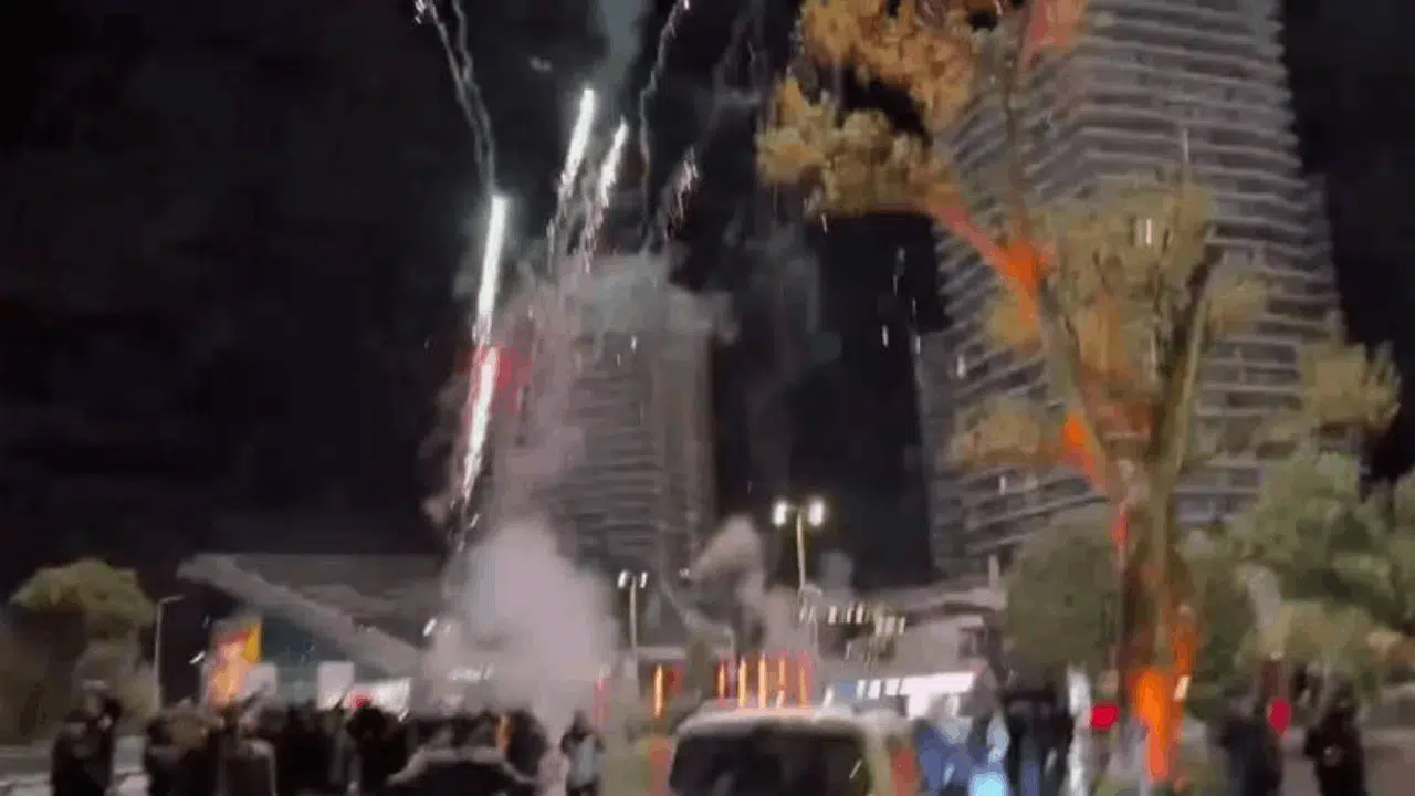 Gece saatlerinde yüzlerce sarı-kırmızılı taraftar, Liverpool’un kaldığı otelin önünde toplanarak çok sayıda havai fişek patlattı. Patlamalar, sabaha kadar devam ederken, otel çevresinde yüksek sesli tezahüratlar da duyuldu.