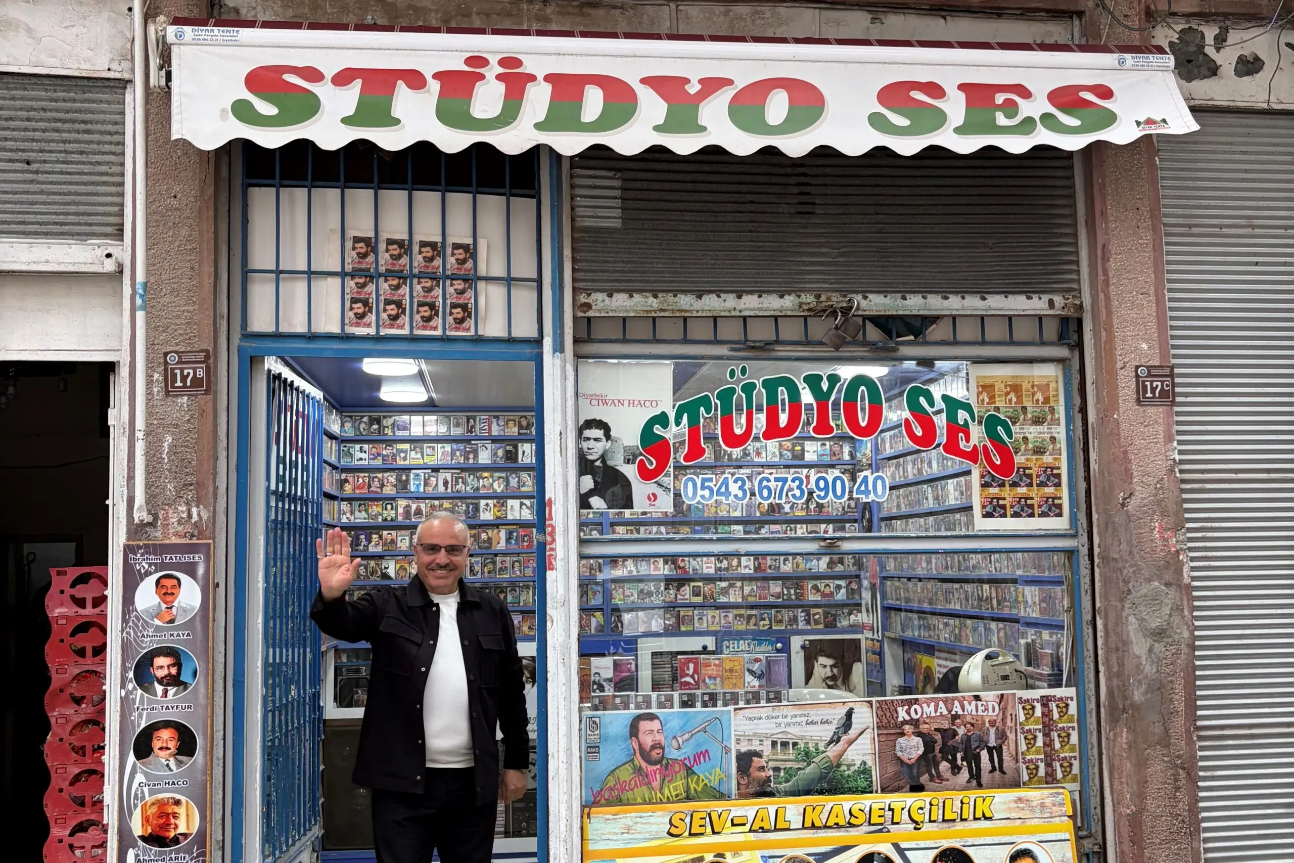 Stüdyo Ses başlangıçta yerel müzisyenlerin ilk kayıtlarını yaptığı bir stüdyo olarak kurulmuştu. Daha sonra kaset satışı da yapılmaya başlandı. 1980’de Ofis’ten Mardin Kapı’ya, eski şehir merkezine taşındı; ardından bugünkü konumuna, Malik Ahmet Caddesi yakınlarına yerleşti. Bu süreçte kayıt faaliyetlerini bırakmış, ağırlıklı olarak kaset satışına yönelmişti; yanında bir miktar plak ve CD de satılıyordu. “Bizim müşterilerimiz ve benim için bu bir nostalji,” der. Müşterilerinin çoğu, kasetlerle büyüyen, sonra CD’ye ve dijital platformlara geçen ancak yeniden fiziksel formatlara yönelen kişilerden oluşuyor. Diğer bir grup ise öğrenciler; bu ortamı hiç deneyimlememiş ama filmlerden ya da anlatılardan görüp merak eden gençler.