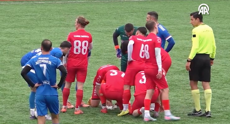 İstanbul Yurdum Spor kalecisi Muhammet Uyanik’ın ceza sahasından uzaklaştırdığı top, sahada uçan martıya isabet etti. Yere düşen kuşu fark eden takım kaptanı Gani Catan, yaklaşık iki dakika kalp masajı yaparak martıyı hayata döndürdü.
