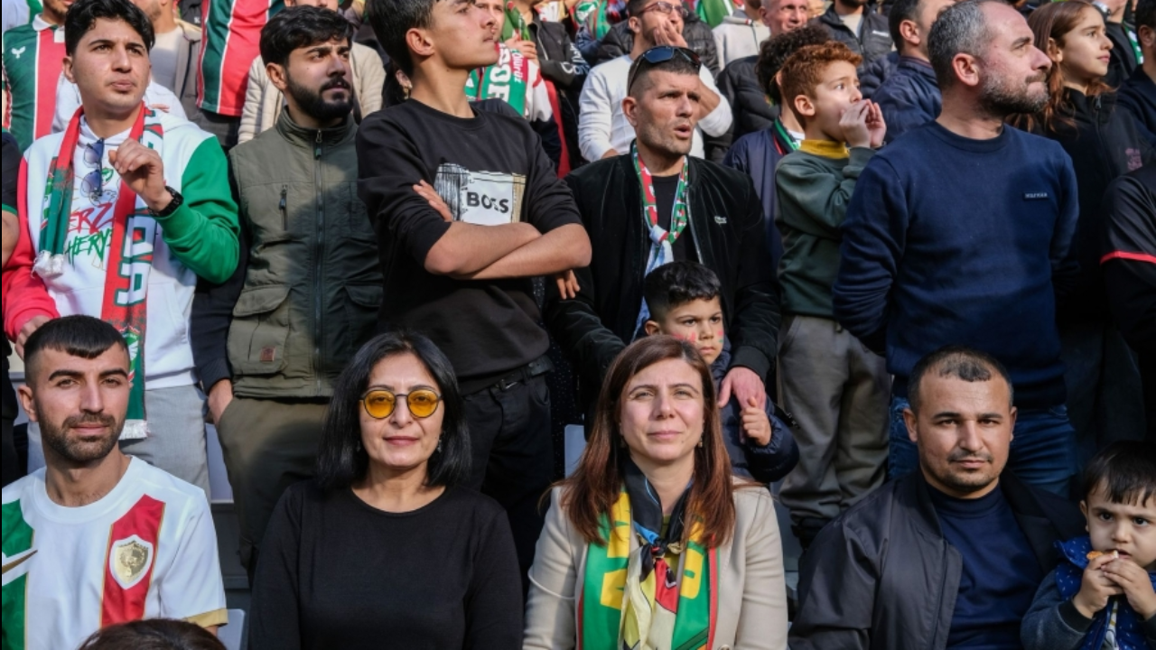 Büyükşehir Belediyesi Eşbaşkanı Bucak’a Doğu Tribünü’nde Berivan Gülşen Sincar da eşlik etti. İki isim maçı taraftarlarla birlikte takip etti.